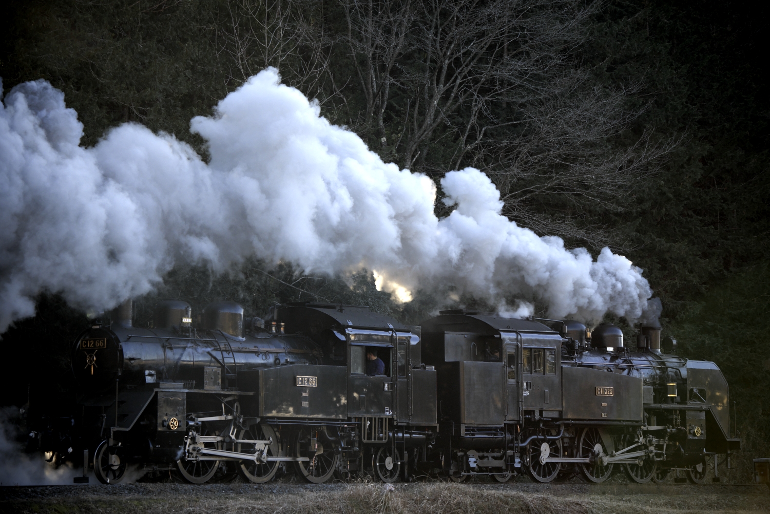 いつもならここでお開き。ですが、今日は毎冬おこなわれるイベントの「ナイトトレイン」が走る日です。しかも今年は重連!ともなると期待は最高潮です。ここからは写真に集中してかかりましょう。