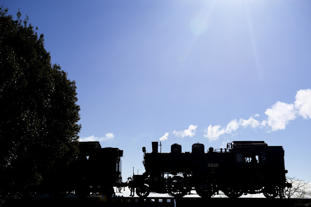 この角度からSLを映すと側面は日陰です。ともなれば基準とする《支配光は青空》です。